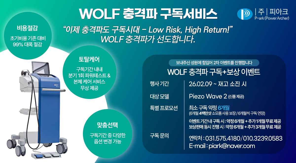 피에조압전방식을(Piezoelectric Shock wave) 개발한 독일 울프사의 Focus type 체외충격파 High-end Model 입니다.